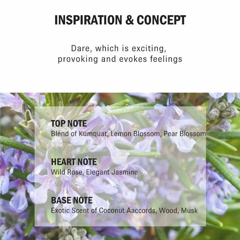 Top notes of Guess Dare open with a blend of Kumquat, lemon blossom and pear blossom adding up to the cactus blossom in the heart surrounded with wild rose and elegant jasmine.