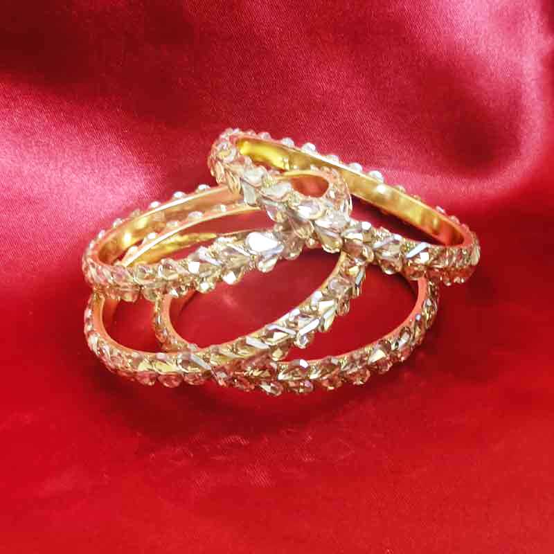 Latest Metal Base Silver Toned Bangles Adorned with Artificial Tear Drop Stones and Beads Pair of 2